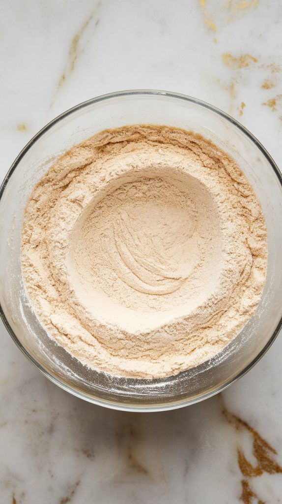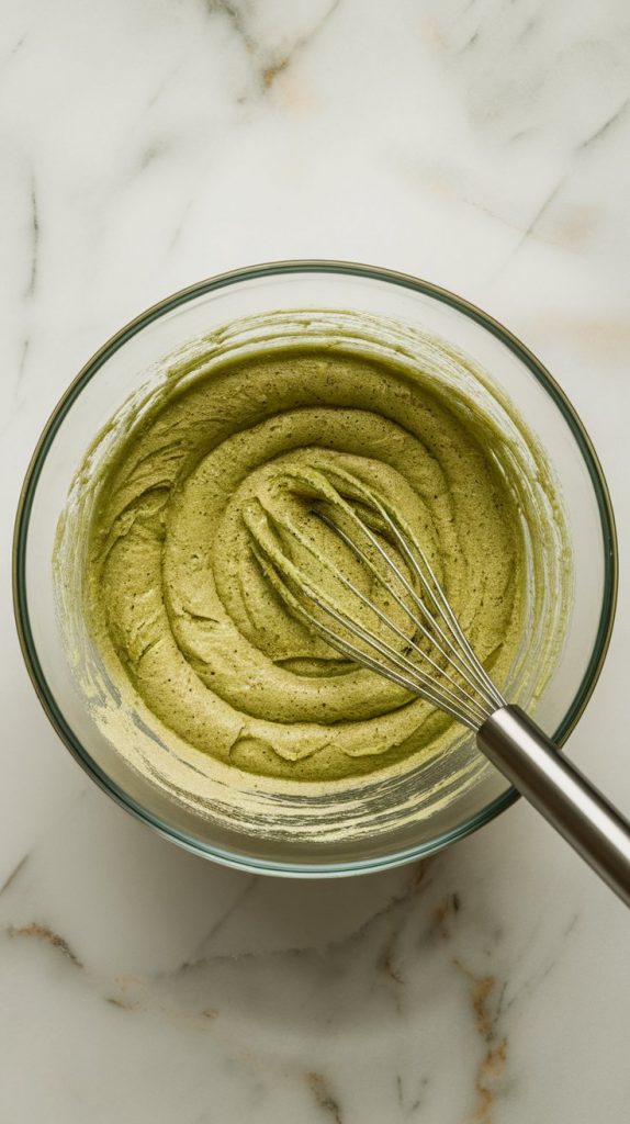 Pour the green wet mixture into the bowl of dry ingredients. Gently whisk just until combined. Don’t overmix — the batter should be slightly lumpy.