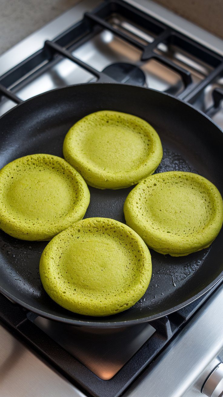 Baking powder gives pancakes that lift and fluff. When mixed with liquid and heated, it releases carbon dioxide bubbles that expand and puff up the batter. The melted butter adds tenderness, and the green food coloring doesn’t affect the taste — just the fun. Whipping the egg slightly before mixing helps keep the batter smooth.