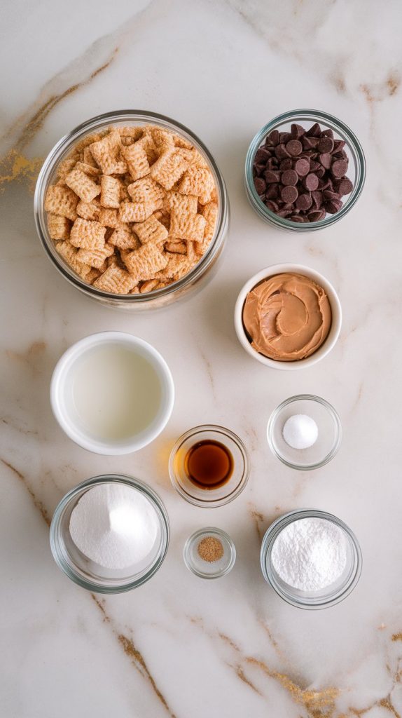 - 6 cups rice square cereal (like Rice Chex)
