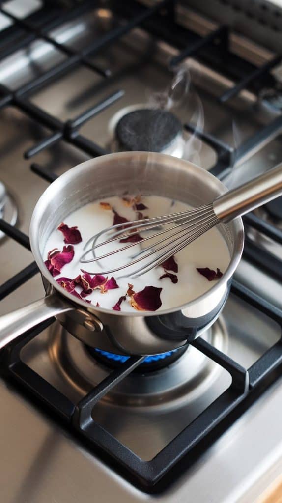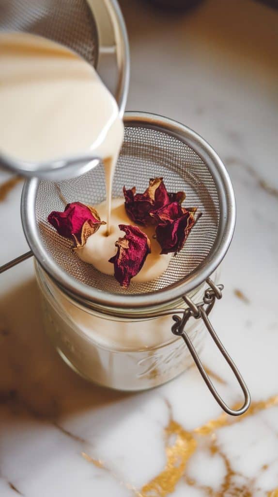 - Strain for smoothness: Strain the creamer to remove the rose petals if you want a silky texture.