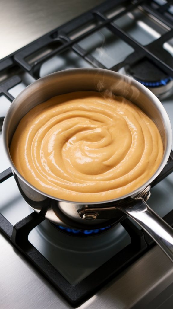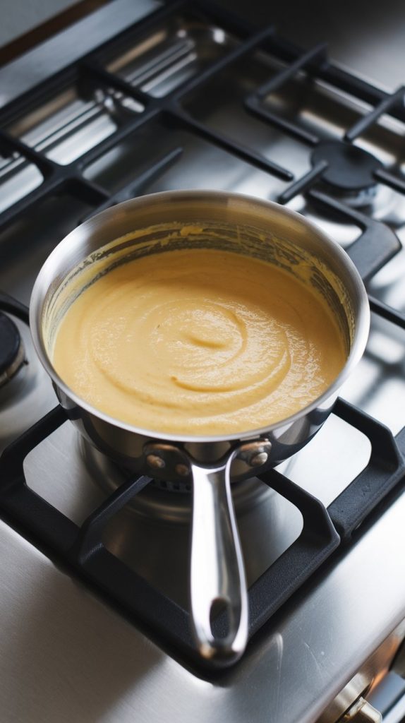 Pour the tempered egg mixture back into the saucepan. Cook over medium-low heat, stirring constantly with a wooden spoon, until it thickens slightly — about 5–7 minutes. Don’t let it boil.