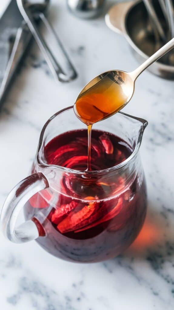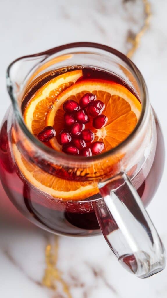 Red wine brings tannins and depth, while the bourbon adds a smoky, caramel note. Honey blends more smoothly than sugar and dissolves better into cold liquids. The acidity from the orange slices helps balance out the sweetness, and pomegranate seeds add texture and tartness. Letting it sit allows all those flavors to mingle and mellow together, making each sip better than the last.