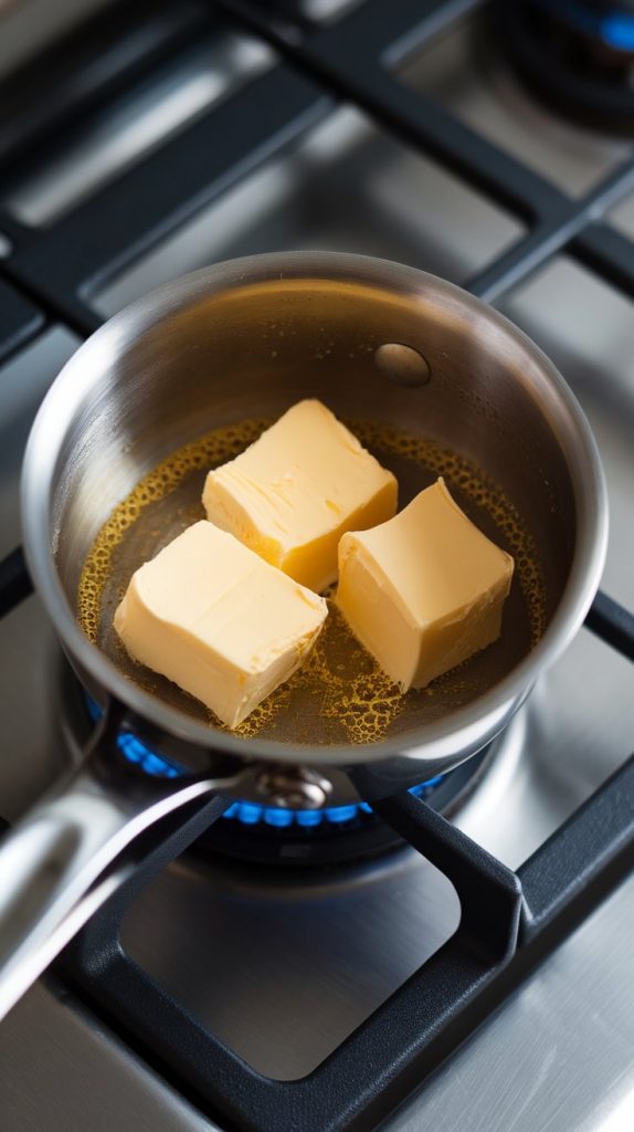 Add 2 tablespoons unsalted butter to a small saucepan. Melt over medium heat, stirring constantly, until the butter turns golden brown and smells nutty — about 3–4 minutes. Remove from heat immediately.
