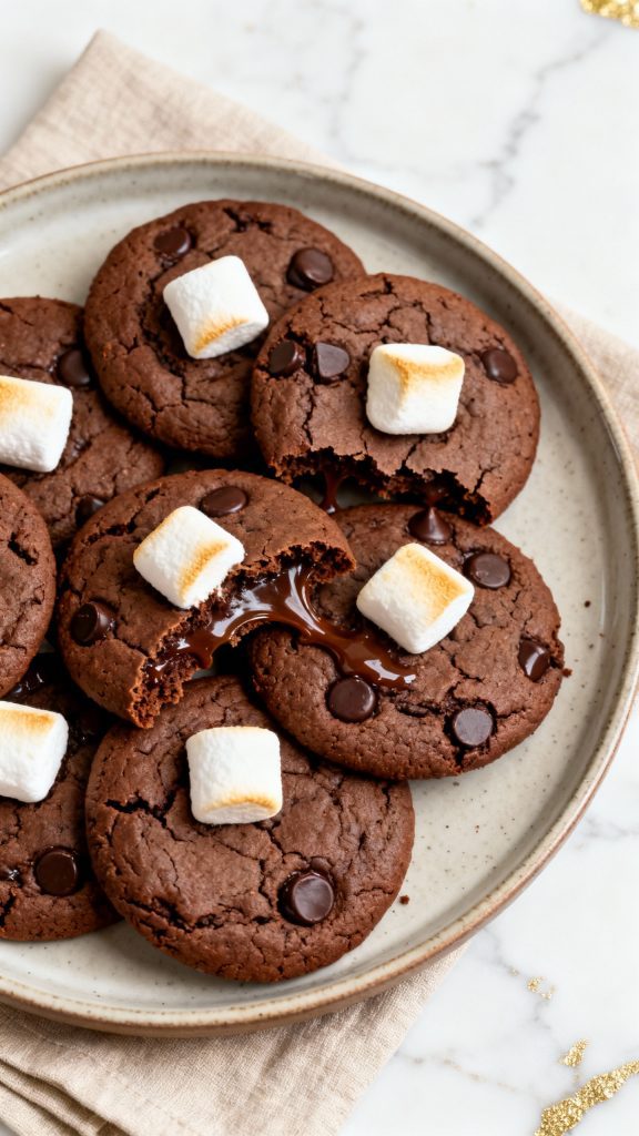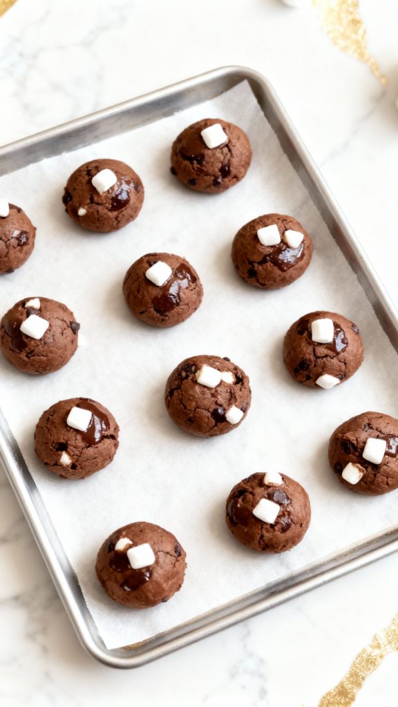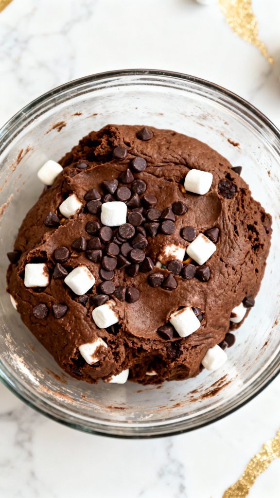 Creaming the butter and sugar adds air to the dough, helping the cookies rise while staying soft. Cocoa powder gives intense chocolate flavor without extra moisture. The marshmallows melt just enough to create gooey pockets without making the dough wet.