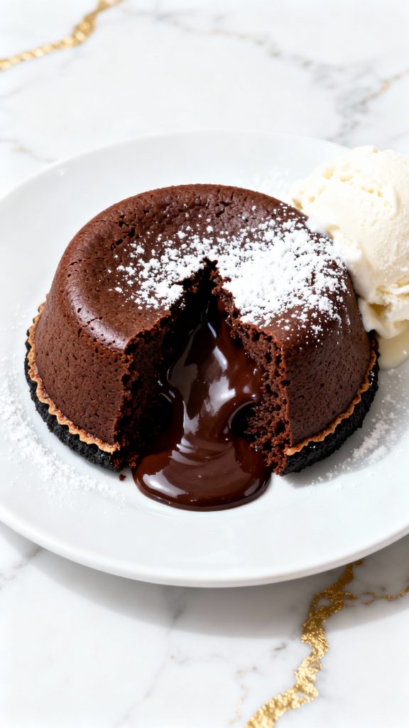 The magic of the molten center comes from slightly underbaking the batter. The outside bakes into a soft cake while the center stays warm and gooey. The eggs provide structure, while the chocolate and butter give that rich, fudgy texture. No leavening agent is needed because the eggs and sugar whip up light enough for the perfect lift.