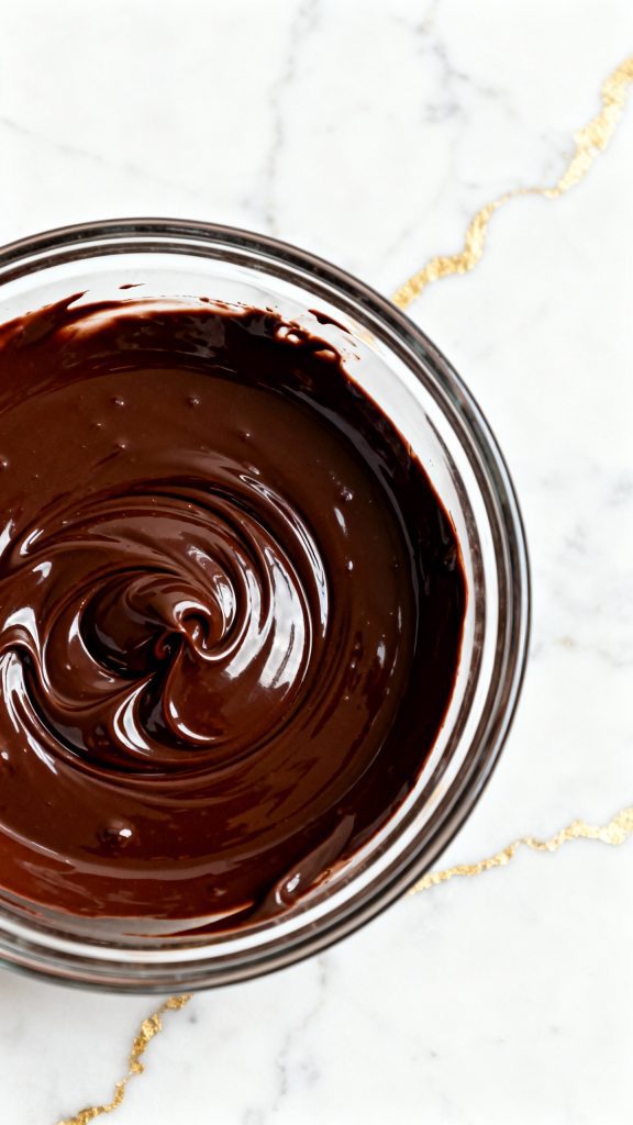 In a microwave-safe bowl, combine 1 stick (½ cup) unsalted butter and 4 oz semi-sweet baking chocolate (chopped). Microwave in 20-second bursts, stirring between each, until smooth and melted. Let it cool slightly.