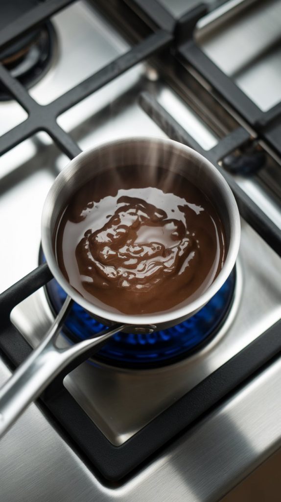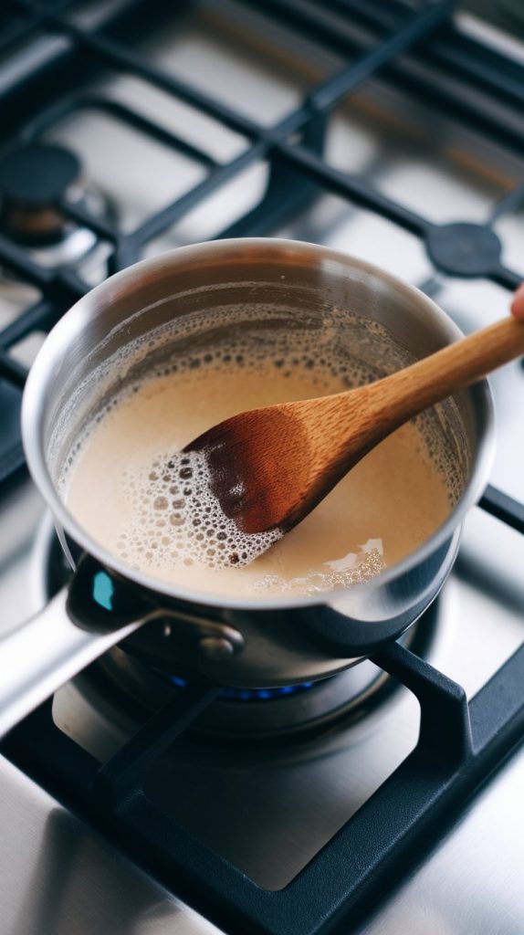 In a small saucepan over medium heat, add 1 cup of full-fat coconut milk. Stir gently until it’s warm but not boiling, about 2–3 minutes.