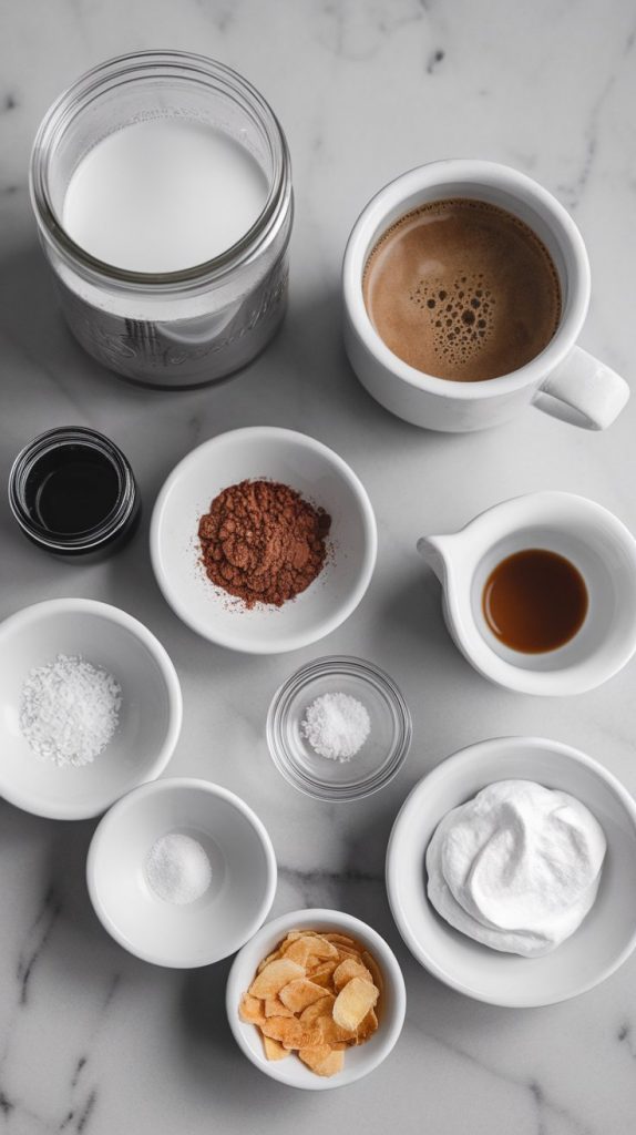 Coconut milk has a high fat content, which gives this mocha its creamy texture. When combined with cocoa powder and hot coffee, the fat helps emulsify everything into a smooth, velvety drink. The pinch of sea salt enhances the chocolate flavor, making it taste richer without needing a lot of sugar.