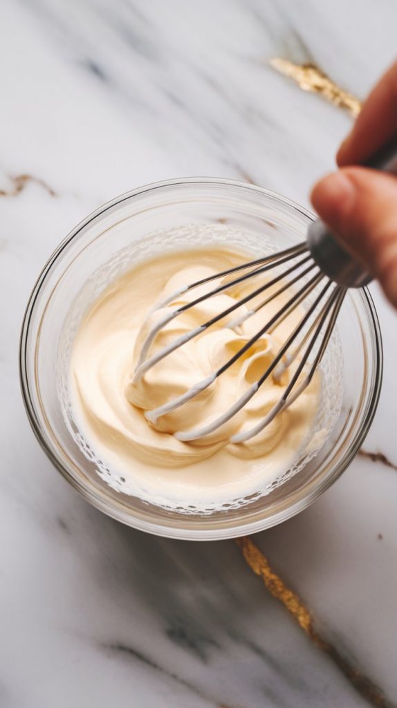 In a small bowl, lightly whip 2 tbsp of heavy cream. It should be thick but still pourable—no stiff peaks.