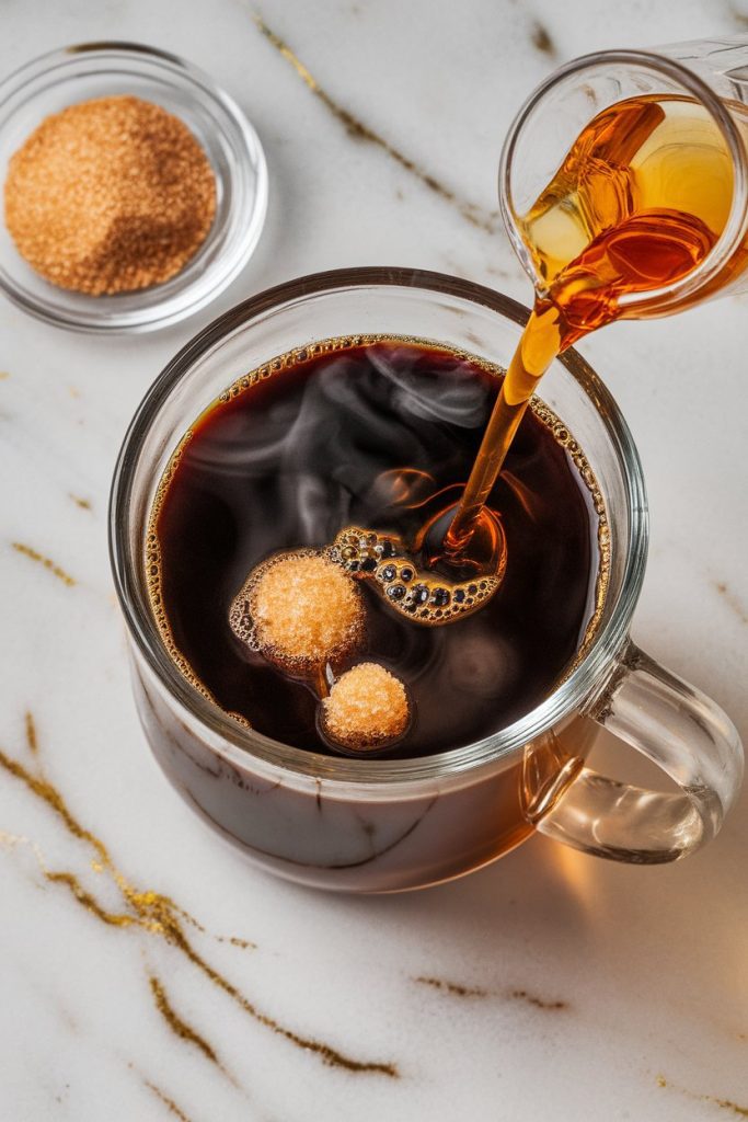 The hot coffee dissolves sugar quickly and blends perfectly with the whiskey. The whipped cream floats instead of sinking because it’s less dense and thicker than the liquid below. Pouring it gently helps it stay separate. The cream also insulates the heat, so the drink stays warm longer.