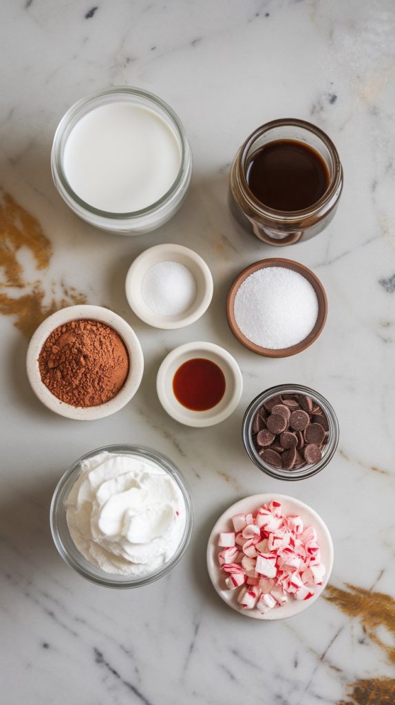 The combination of cocoa powder and melted chocolate gives this mocha a layered chocolate flavor — the cocoa adds richness while the chocolate chips add body and smoothness. Milk proteins balance the bitterness of espresso, and peppermint extract needs only a few drops to bring that cool, refreshing note without overpowering the drink.