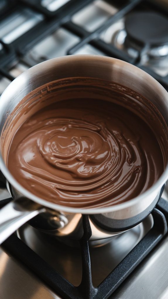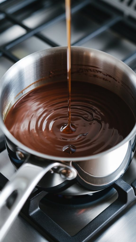 Turn off the heat and stir in 1/4 teaspoon peppermint extract and 1/4 teaspoon vanilla extract.