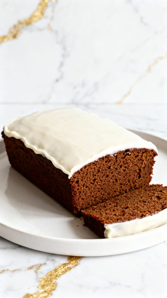 Molasses is acidic, which activates the baking soda to create a tall, fluffy loaf. The brown sugar adds moisture, while the spices bloom during baking, infusing the cake with warm depth. The icing adds contrast with a cool, sweet finish.