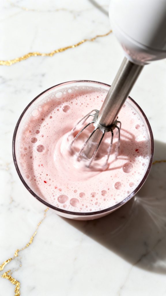 - Froth the strawberry mix well so it gets thick and creamy