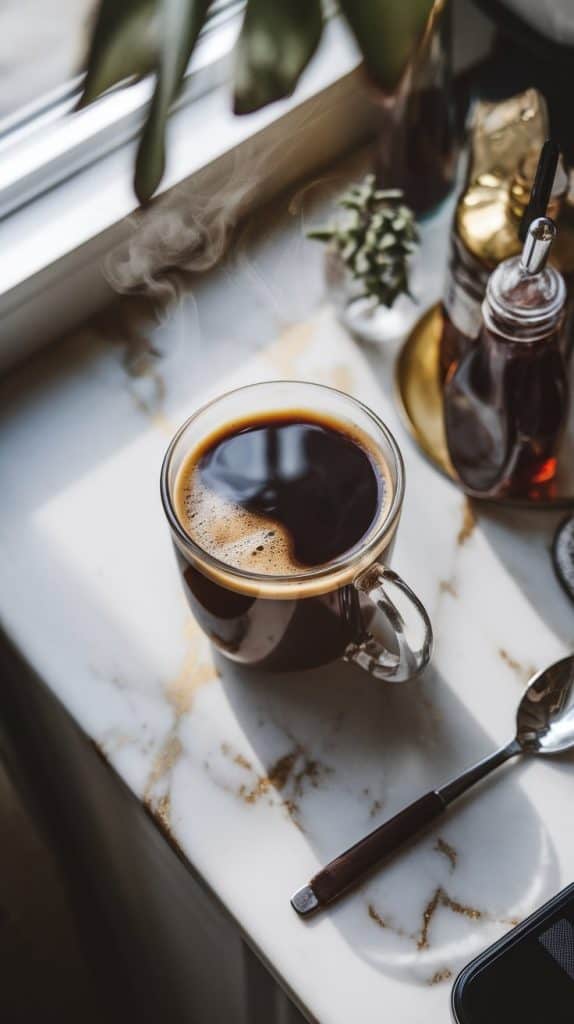 Start by brewing a fresh cup of coffee. Let it cool or pop it in the fridge to chill.