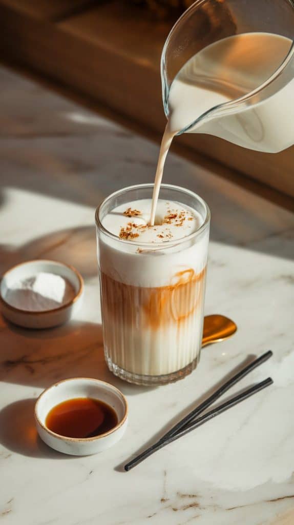 3. Blend for froth: For an extra creamy texture, blend the coffee and cashew milk together in a blender before pouring over ice.