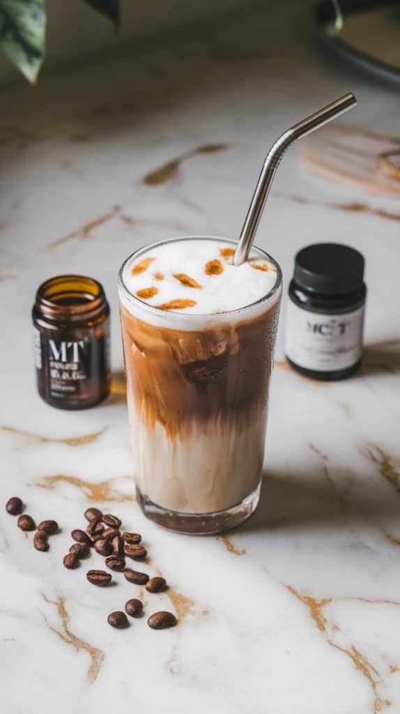 In a blender, combine the coffee, heavy cream, MCT oil, and vanilla extract (if using). Blend for 20–30 seconds until frothy.