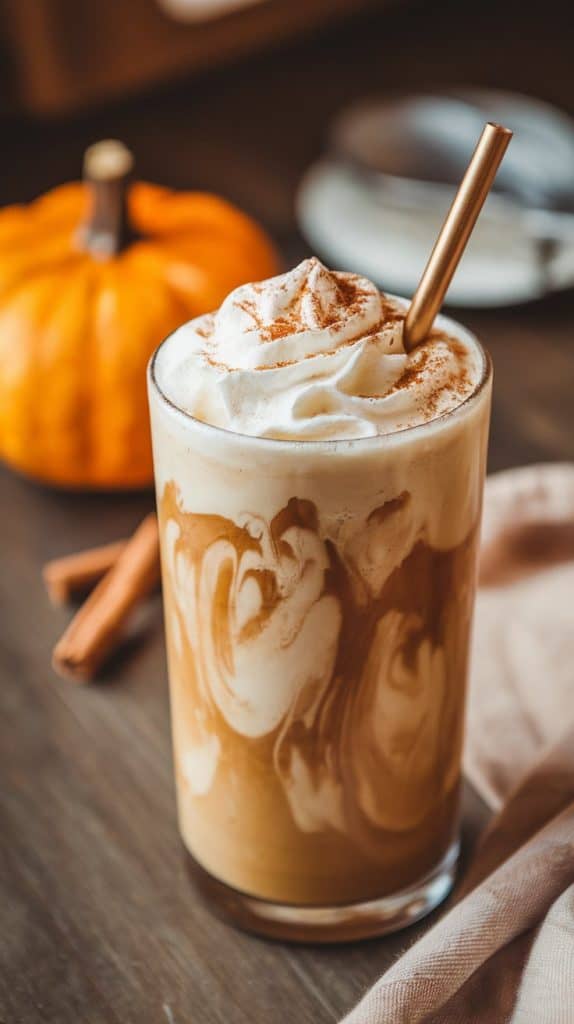 Add ice cubes to the glass, pour in heavy cream, and give it a final stir. Top with whipped cream and a pinch of pumpkin pie spice if desired.