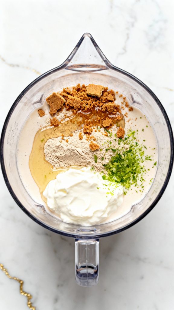The Greek yogurt adds creaminess and thickness, while the protein powder gives it body and nutrition. The lime juice gives it that tart kick, but the zest is where the real flavor lives—because that’s where all the essential oils are. Blending in crushed graham crackers gives you that pie crust flavor without baking.