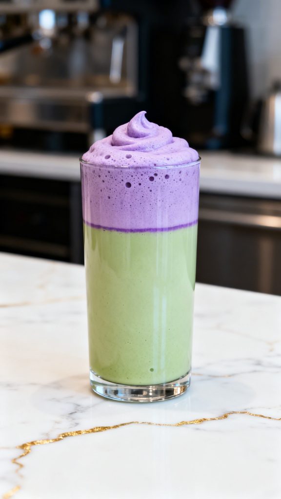 You get earthy matcha, sweet lavender, and that creamy ube foam on top that feels like a café treat—but made right at home.