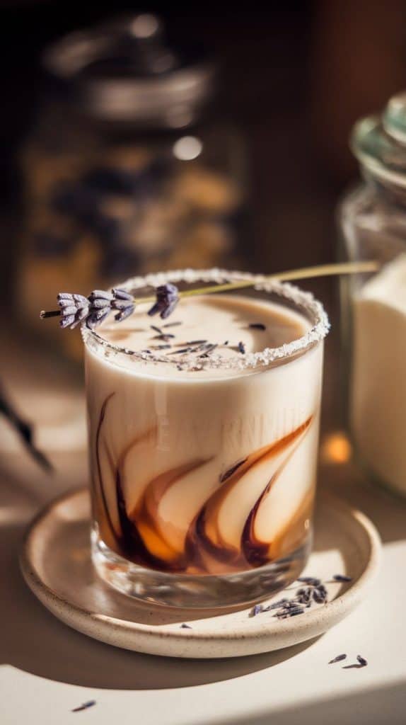 • Optional garnish: Dried lavender buds, fresh lavender sprig, or a dusting of cocoa powder