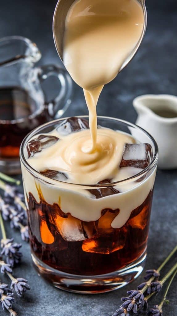 Slowly pour the heavy cream over the back of a spoon into your glass, creating soft, milky swirls.