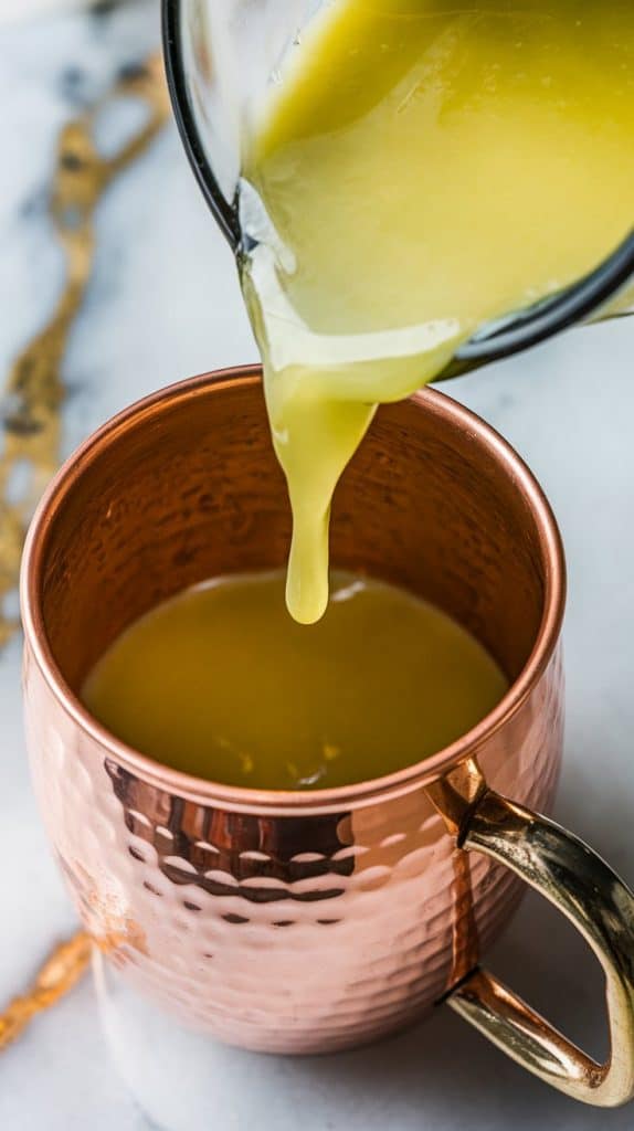 Pour the fresh lime juice into a chilled copper mug.