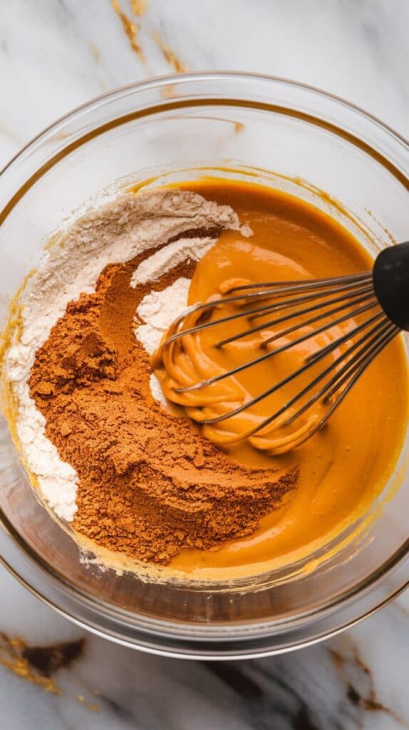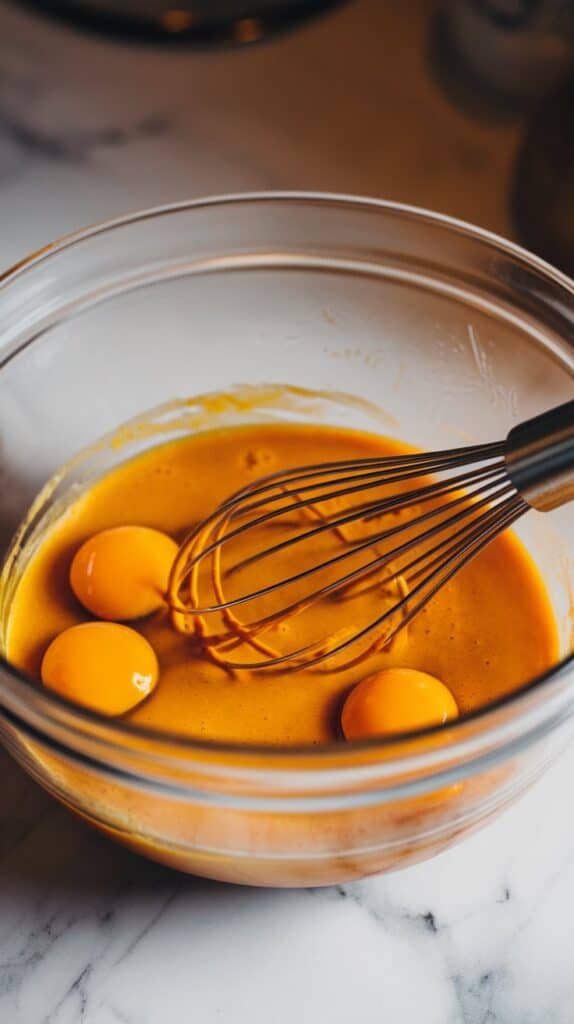 Whisk until the batter is smooth. Let it sit for 2–3 minutes to thicken.