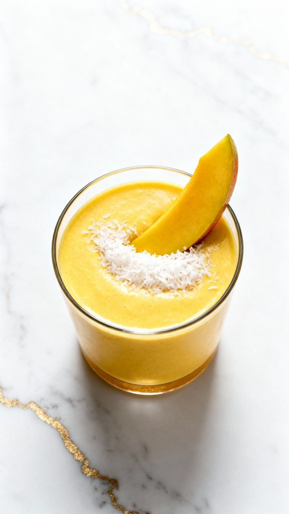 - Frozen mango gives natural sweetness and a thick texture—no need for sugary yogurt.