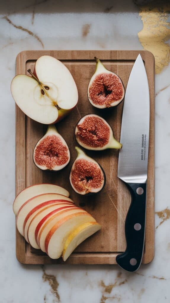 Slice 4 fresh figs into quarters and thinly slice 1 small apple.