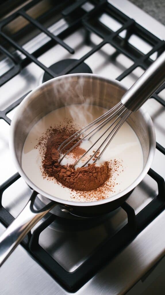 - Whisk constantly when adding cocoa to avoid lumps.