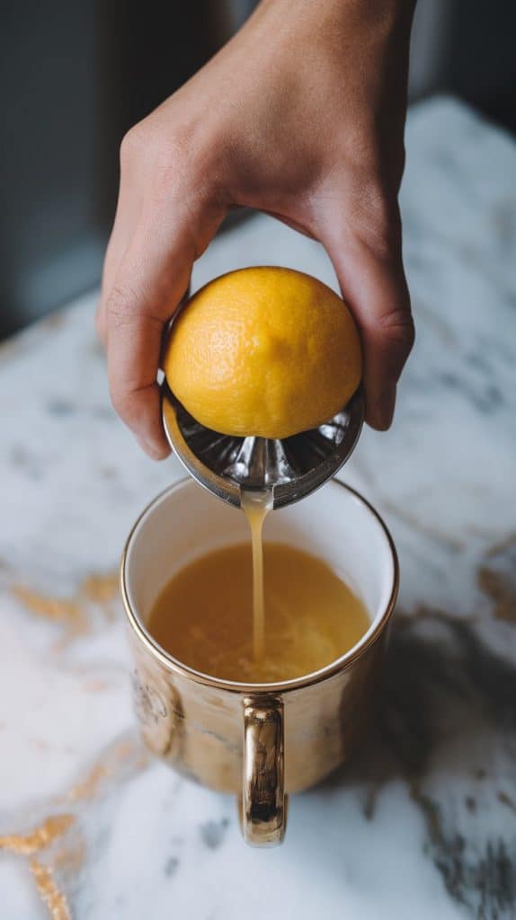 While the water heats, juice the Meyer lemon into your mug, removing any seeds.