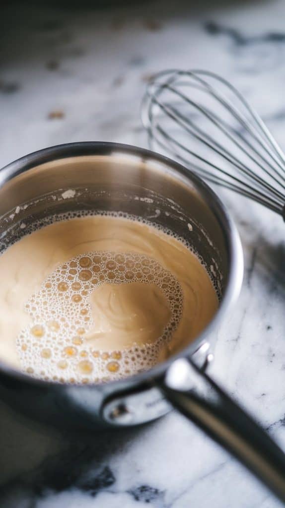 In a small saucepan, combine the heavy cream, whole milk, and sugar. Heat over medium-low until the sugar dissolves and small bubbles form around the edges. Do not boil.