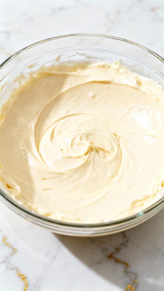 In a large bowl, beat 3 blocks softened cream cheese until smooth and fluffy. Add ¾ cup sugar and beat until fully combined. Mix in 1 cup sour cream, ½ cup heavy cream, and the cooled Earl Grey milk. Add 2 eggs, one at a time, mixing gently between each addition. Do not overmix.