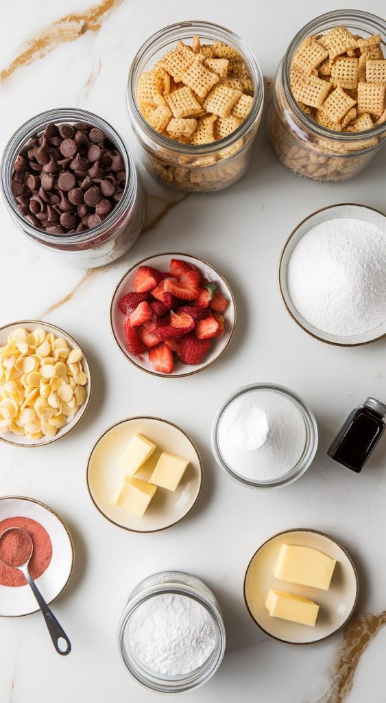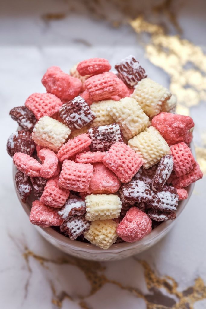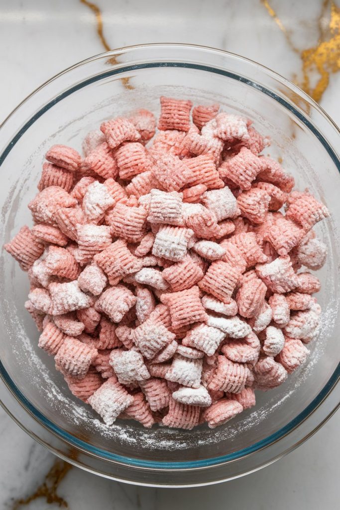 This Neapolitan Puppy Chow is one of those sweet treats that disappears almost as fast as you make it. It’s crunchy, chocolatey, fruity, and creamy all in one bite. If you love classic Muddy Buddies, this is like the extra fun version. Inspired by the classic Neapolitan ice cream, it’s got chocolate, strawberry, and vanilla layers that each bring their own magic.