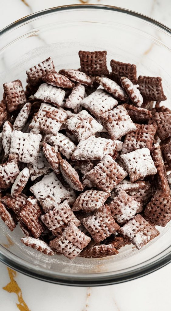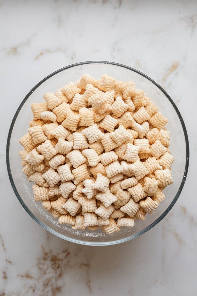 Transfer coated cereal to a zip-top bag with 1/2 cup powdered sugar. Seal and shake until evenly coated.