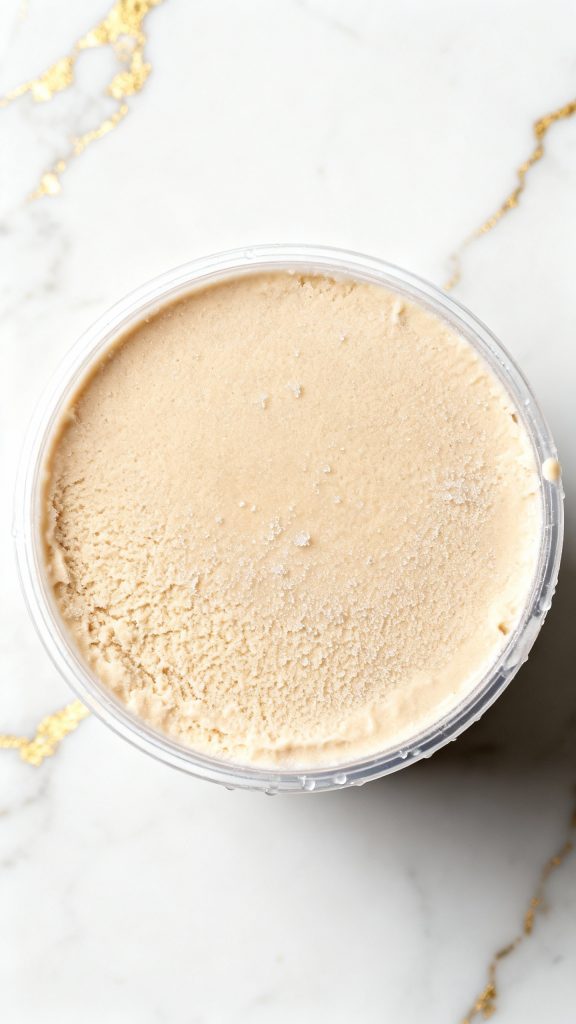 After freezing, insert the pint into the outer bowl, lock in place, and run the Lite Ice Cream cycle once. If needed, respin up to 2 times to get a creamy texture.