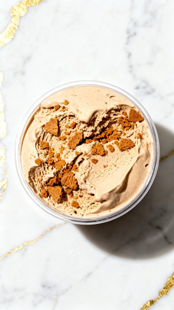 Scoop 3 generous scoops into a bowl. Sprinkle extra crushed Biscoff cookies on top and serve right away.