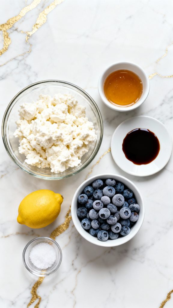 Add 1 cup full-fat cottage cheese, 1 tablespoon honey, 1 teaspoon vanilla extract, ½ cup frozen blueberries, 1 tablespoon lemon juice, and a pinch of salt into a blender. Blend until completely smooth, about 30–45 seconds.