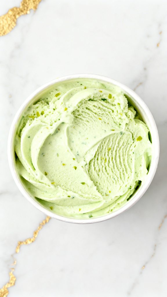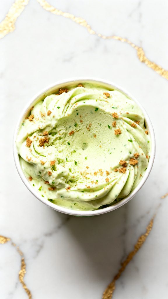 Scoop the creamy key lime protein ice cream into a round white bowl. Top with a sprinkle of extra lime zest and a pinch of crushed graham crackers if you like.