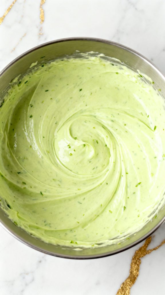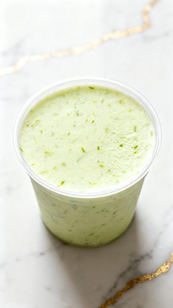 Pour the smooth pale green mixture into your Ninja Creami pint container. Smooth the top so it’s level.