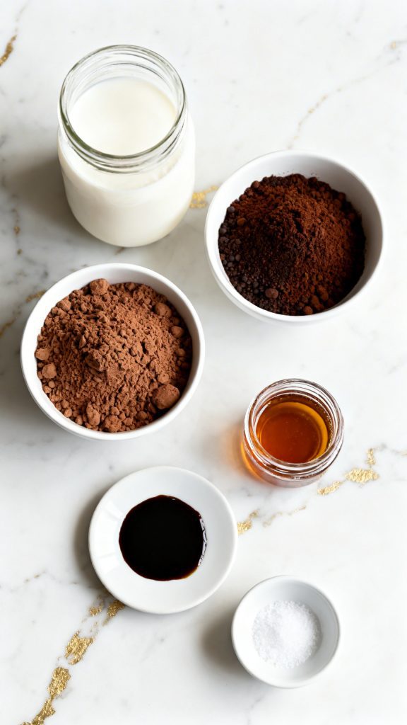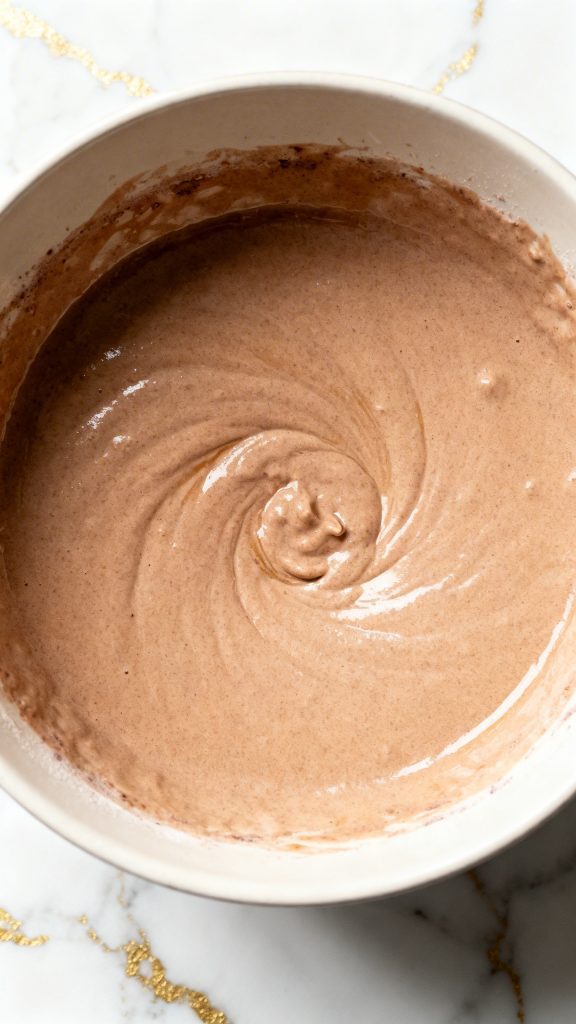 In a medium mixing bowl, pour in 1 cup unsweetened vanilla almond milk. Add 1 scoop (about 30 grams) chocolate protein powder, 1 tablespoon unsweetened cocoa powder, 1 teaspoon instant espresso powder, 1–2 tablespoons maple syrup, ½ teaspoon vanilla extract, and a tiny pinch of salt. Whisk really well until the mixture is smooth and no dry powder is left. The mixture should look smooth and light brown.