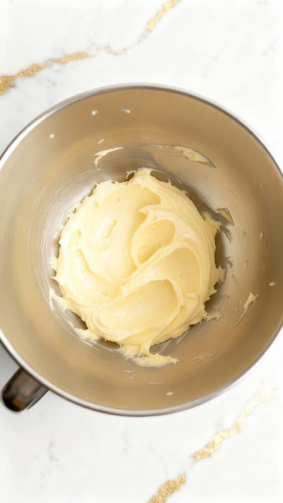 In a large mixing bowl, cream ½ cup softened unsalted butter with ½ cup packed brown sugar and 2 tbsp granulated sugar using a hand mixer until light and fluffy.