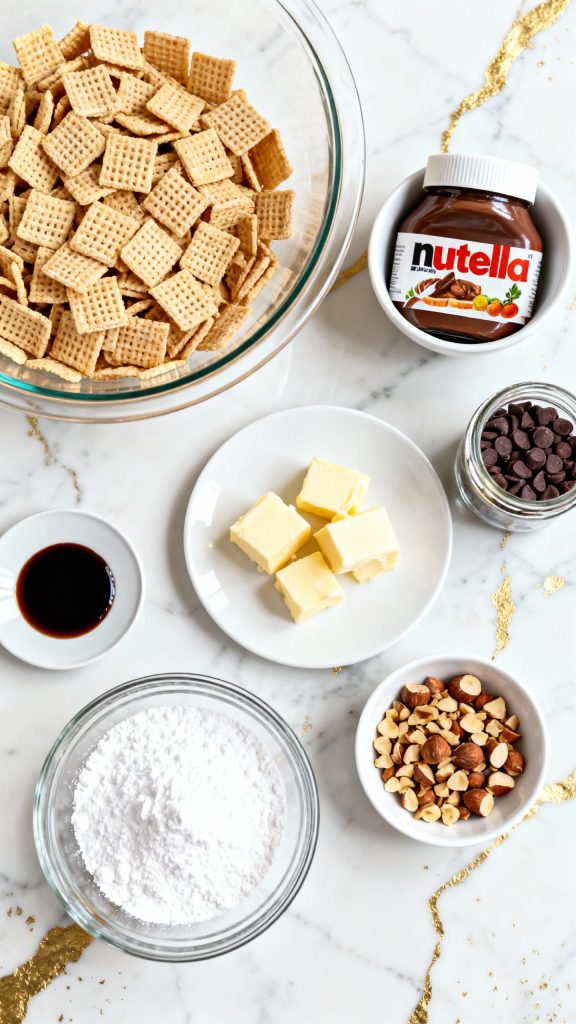The warmth of melted butter and chocolate loosens up the Nutella, so it coats the cereal evenly without making it soggy. Powdered sugar acts like a dry barrier, locking in the gooey coating while giving it that iconic sweet crunch. Toasted hazelnuts add texture and balance out the sweetness.