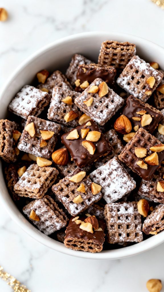 This Nutella Hazelnut Puppy Chow is a total snack game-changer. It’s crunchy, chocolatey, and a little bit fancy with those toasted hazelnuts.