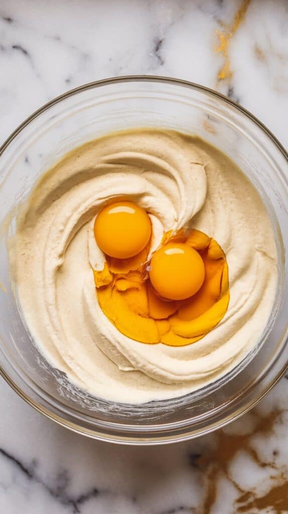 Crack in 2 large eggs and add 1 tsp vanilla extract. Beat until smooth and well combined.