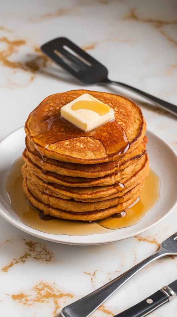These pancakes are one of those cozy, feel-good breakfasts that you can throw together on a weekend morning and still feel great after eating.