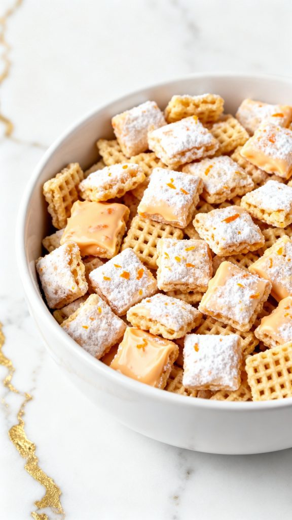 Orange Creamsicle Puppy Chow is bright, citrusy, creamy, and crunchy all at once.