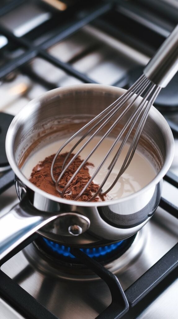 Whisk in 2 tbsp unsweetened cocoa powder and 2 tbsp granulated sugar. Keep whisking until smooth and blended—no clumps.