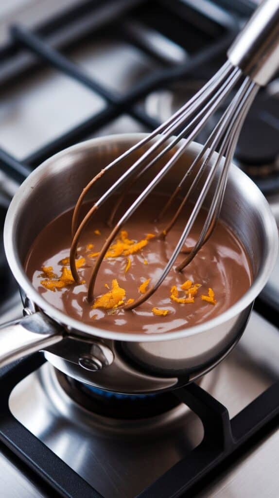Turn off the heat and stir in 1 tbsp fresh orange zest and 1 tsp vanilla extract. Let it sit for a minute to infuse the flavors.
